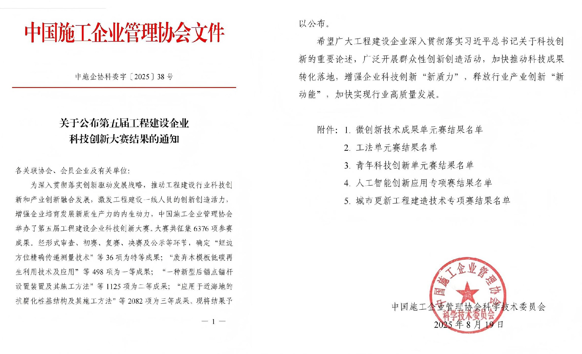 近日,第五屆全國工程建設企業(yè)科技創(chuàng)新大賽獲獎結果出爐,集團在“青年科技創(chuàng)新單元賽”中斬獲一···